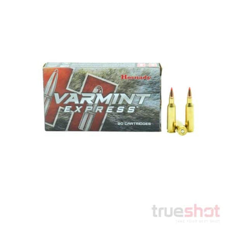 Loadings of this type feature a premium, specialty V-Max projectile from Hornady. These projectiles feature polymer tips and are well-suited to varmint hunting applications. V-Max loadings are also capable of high velocities and flat trajectories, adding to their potency. Projectiles are designed to expand and fragment on impact, resulting in optimal terminal ballistics in varmint hunting applications.Common V-Max Calibers