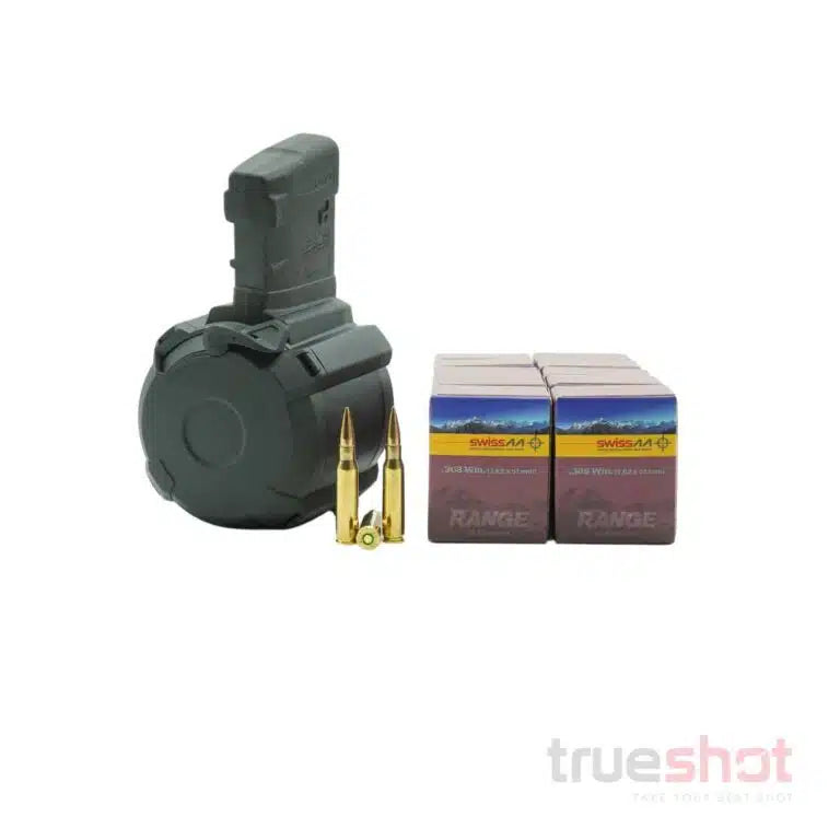 BUNDLE DEAL: 50 Round Magpul D-50 M3 308/7.62×51 Drum Magazine and 200 Rounds of Ammo - Retail / GGG 308 Win 147 Grain is backordered and will ship as soon as it is back in stock.
