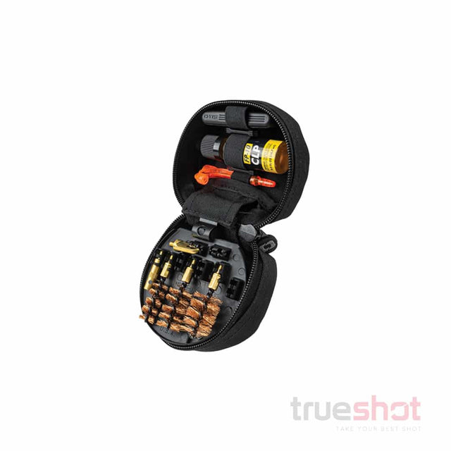 Trap, skeet or sporting clays, turkey, duck or bird hunting, this Universal Shotgun Cleaning Kit is designed to properly care for your shotguns. The unique cotton patches and patch savers® create swabs for 360 degree coverage, ensuring a proper Breech-to-Muzzle® clean for 12/10 ga, 20 ga and .410 ga shotguns. Three bore brushes are included. This cleaning kit is proudly made in the USA and contained in a lightweight, compact soft pack case. This kit includes: