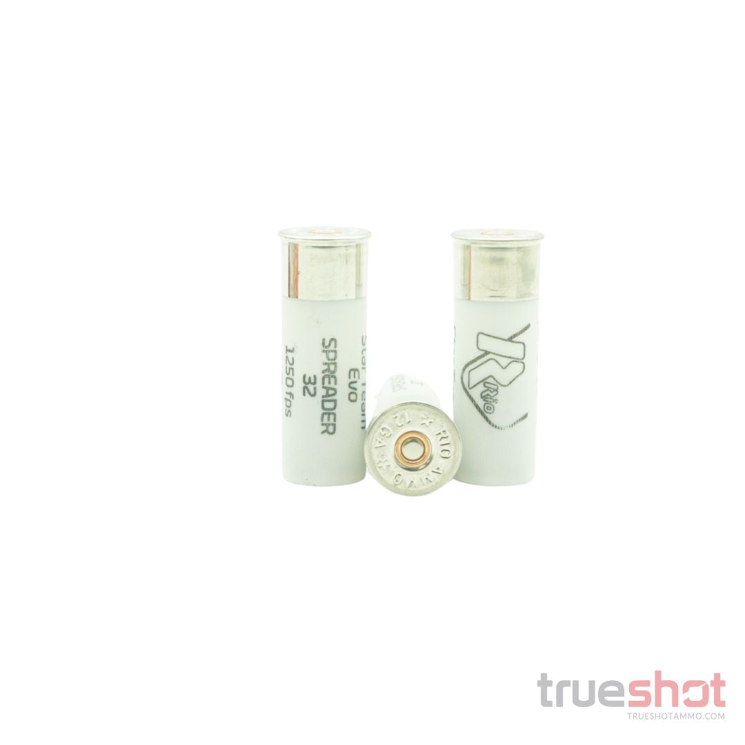 Rio - Star Team Evo Spreader 32 - 12 Gauge - #8 Shot - 2.75" - 1-1/8 Oz. - 1250 FPS - 25 is backordered and will ship as soon as it is back in stock.